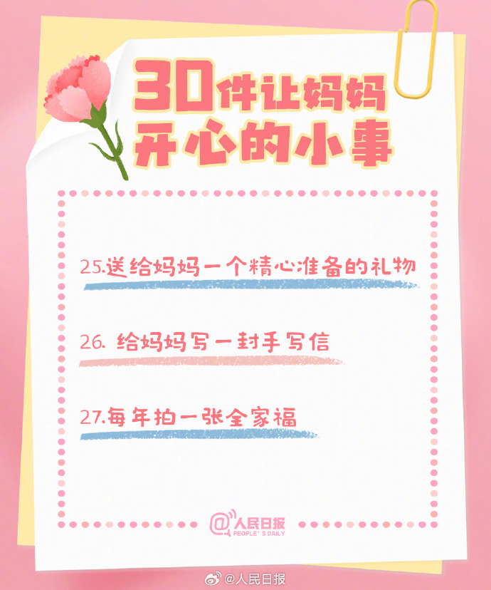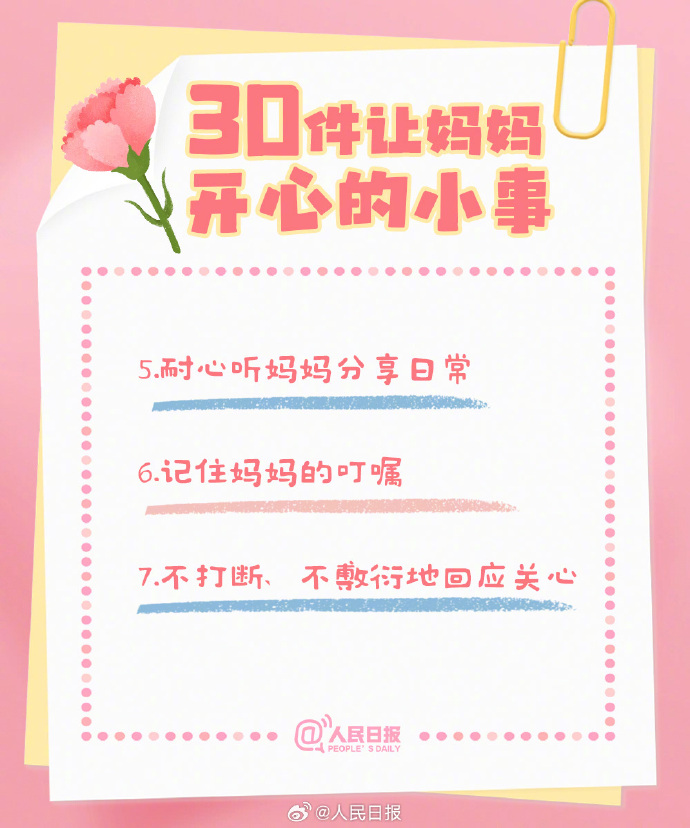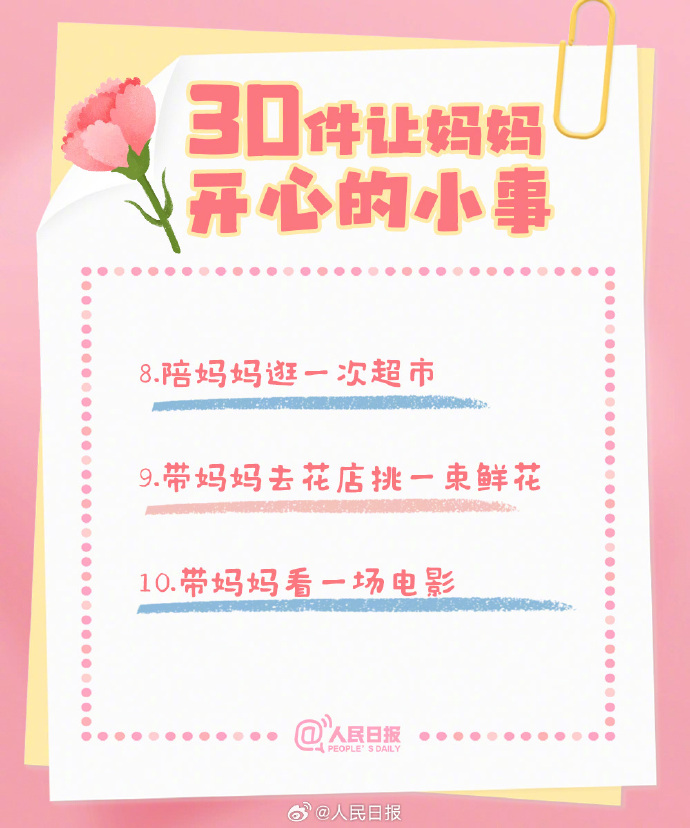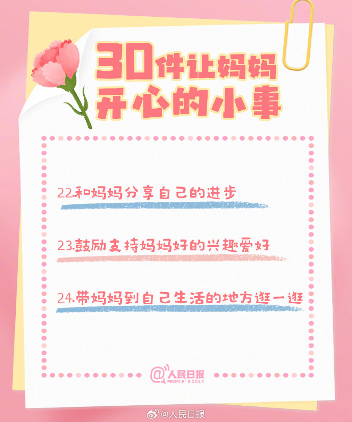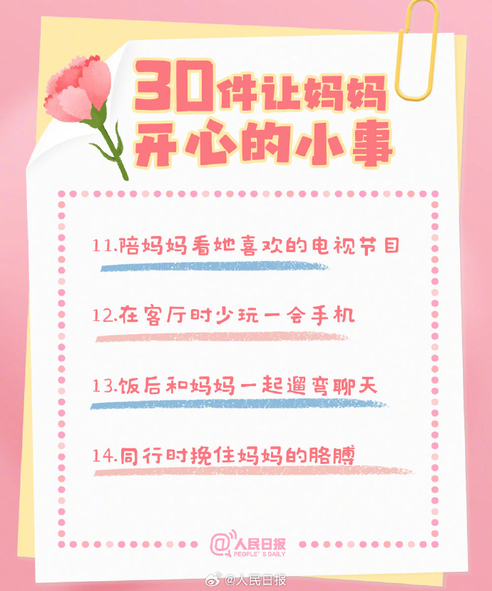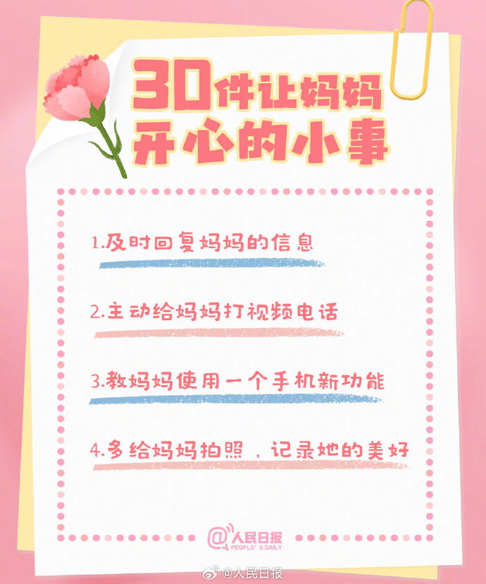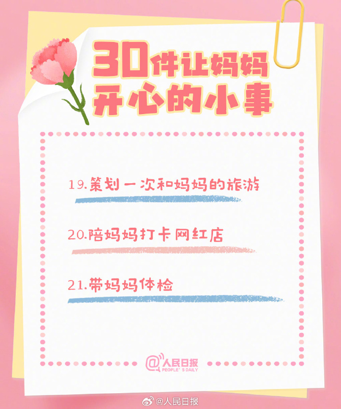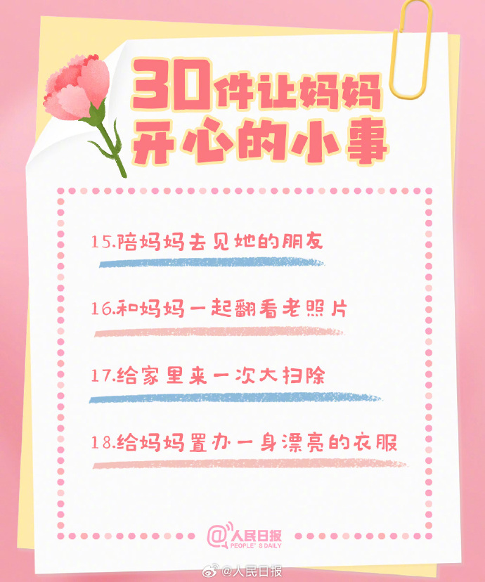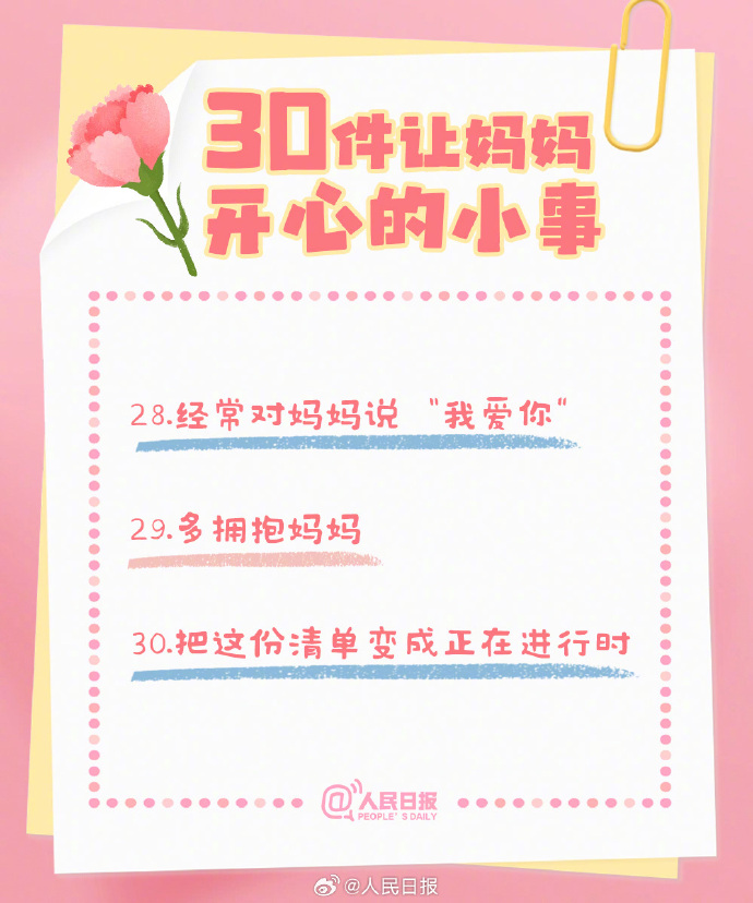 那些没来得及说出口的话,不如化作具体的行动,打卡30件让妈妈嘴角上扬的暖心小事,把对妈妈的爱揉进三餐四季。愿所有的妈妈健康快乐、幸福常伴。